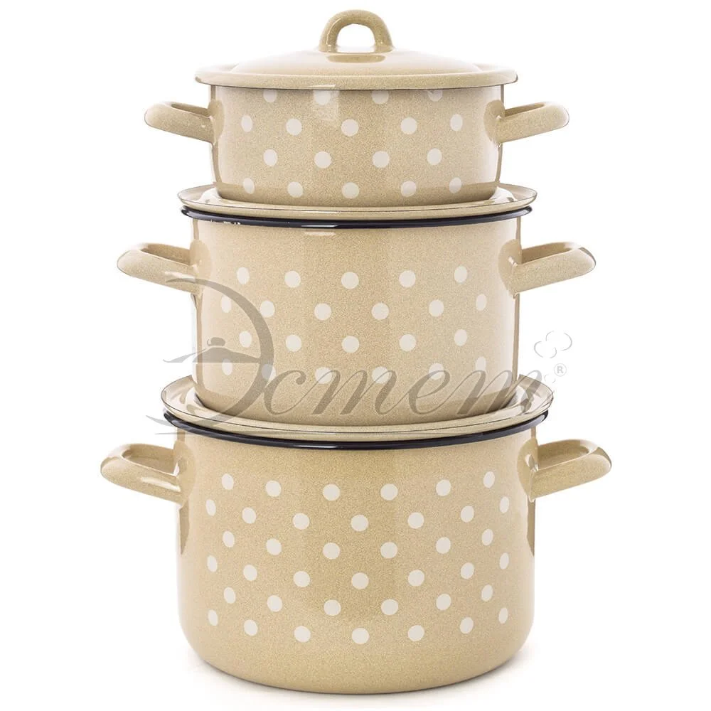 Набор посуды Эстет изготовлен из высококачественного стального проката и покрыта стеклокерамической эмалью. Внутри и снаружи - трехслойное глянцевое эмалированное покрытие. Эмалевое покрытие, являясь стекольной массой, не вызывает аллергию и надежно защищает пищу от контакта с металлом. Кроме того, такое покрытие долговечно, оно устойчиво к механическому воздействию, не царапается и не "сходит", а стальная основа практически не подвержена механической деформации, благодаря чему срок эксплуатации увеличивается. Крышка с эмалированным покрытием оснащена удобной ручкой. Она плотно прилегает к краю, сохраняя аромат блюд. Подходит для всех типов плит, включая индукционные. Можно мыть в посудомоечной машине.