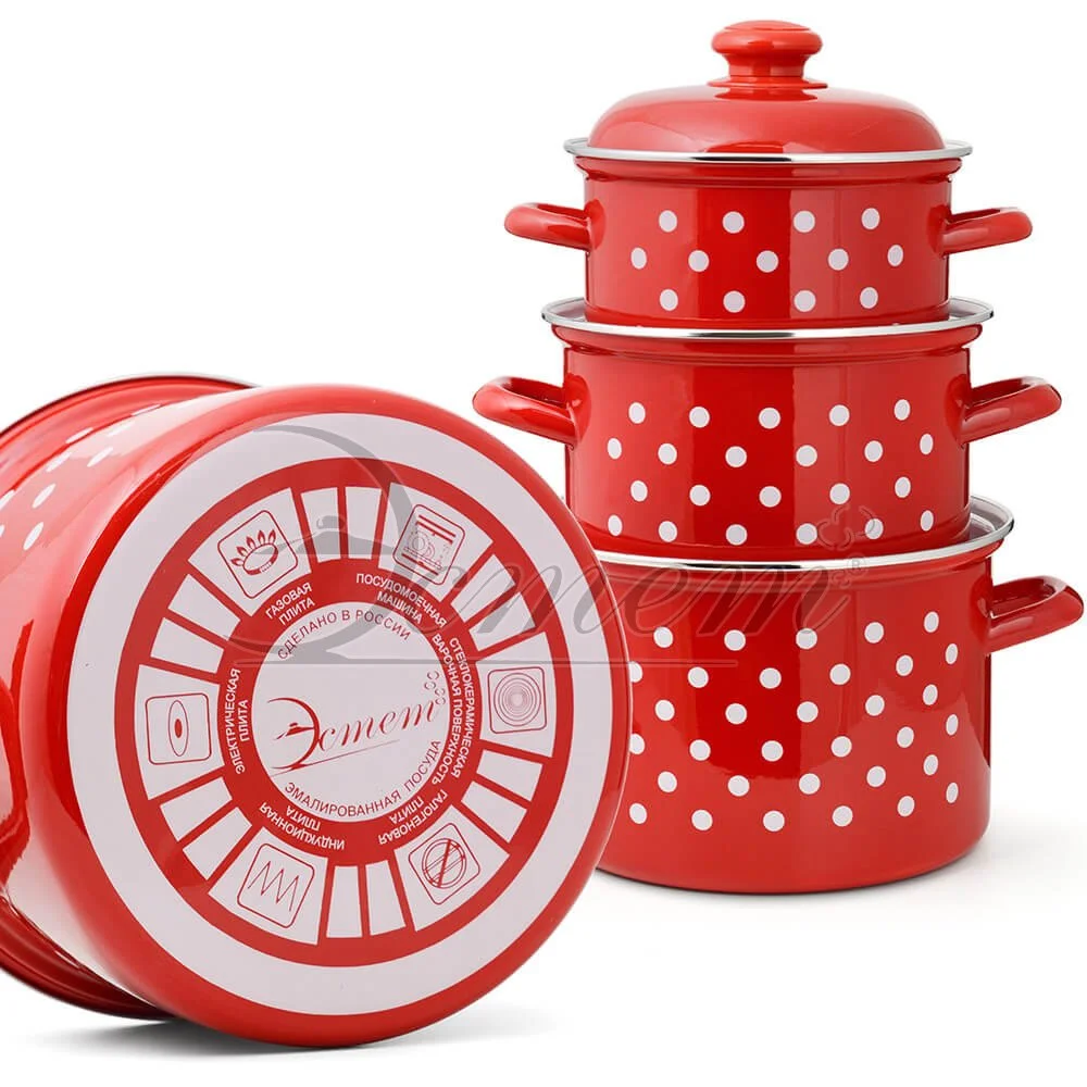 Набор посуды 6 пр ЭСТЕТ Горошинки на красном цилиндрический 2,0 л 3,0 л 4,5 л ЭТ-72412