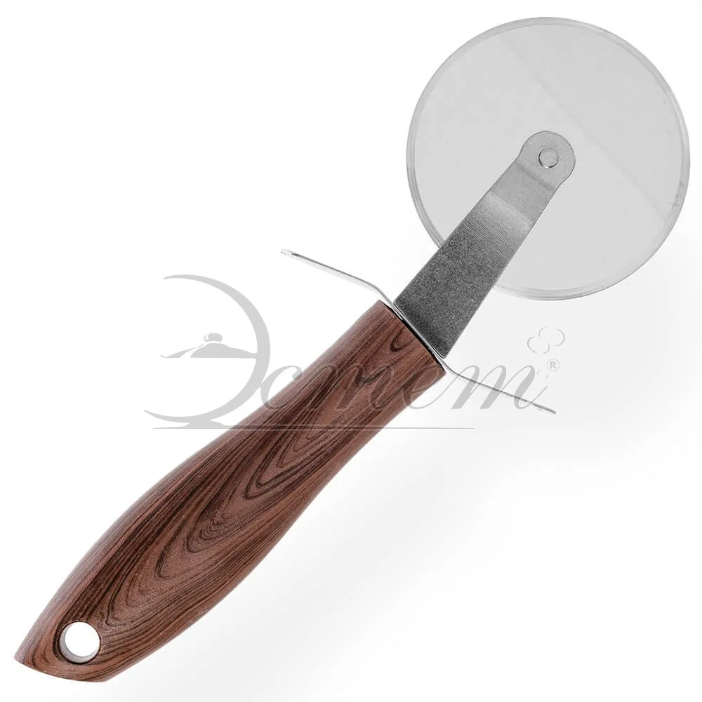 Для разрезания пиццы, теста для пельменей и чебуреков используйте дисковую пиццерезку. Этот нож отлично справляется тонким тестом, имеет удобную конструкцию и хорошо лежит в руке. При разрезании пиццы, главное сохранить внешний вид блюда, не размазав сыр и начинку, поэтому пиццерезка — оптимальный вариант для итальянского лакомства. Модель выполнена из нержавеющей стали. После использования промойте изделие с жидкими моющими средствами и высушите.