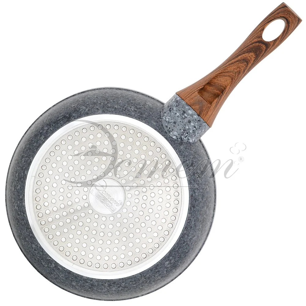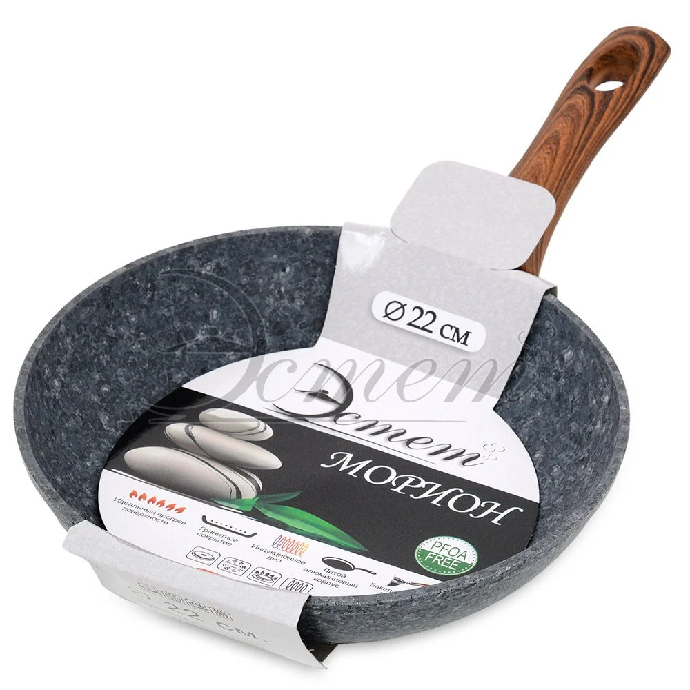 Сковорода ТМ «Эстет» создана, чтобы удовлетворить потребности самых взыскательных кулинаров и профессиональных шеф-поваров. Это результат сочетания современного дизайна, непревзойденного качества и использования передовых сертифицированных материалов. Сковорода изготовлена из литого алюминия с высококачественным антипригарным покрытием. Эргономичная ручка с покрытием «soft-touch» декорированная «под дерево» не нагревается в процессе приготовления пищи и не дает вашим рукам обжечься. Подходит для использования на всех типах плит, включая индукционные.