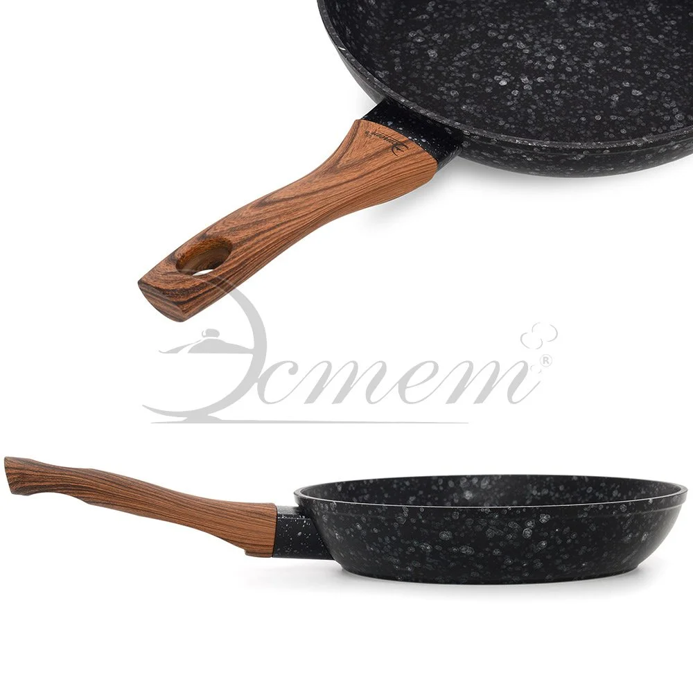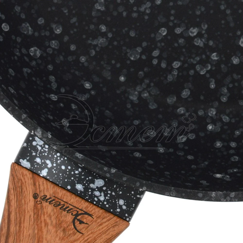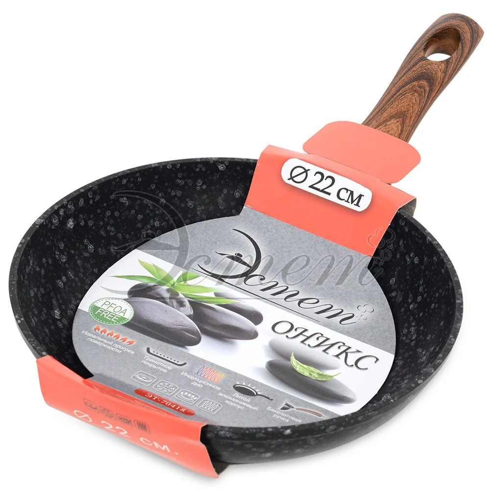 Сковорода ТМ «Эстет» создана, чтобы удовлетворить потребности самых взыскательных кулинаров и профессиональных шеф-поваров. Это результат сочетания современного дизайна, непревзойденного качества и использования передовых сертифицированных материалов. Сковорода изготовлена из литого алюминия с высококачественным антипригарным покрытием. Эргономичная ручка с покрытием «soft-touch» декорированная «под дерево» не нагревается в процессе приготовления пищи и не дает вашим рукам обжечься. Подходит для использования на всех типах плит, включая индукционные.