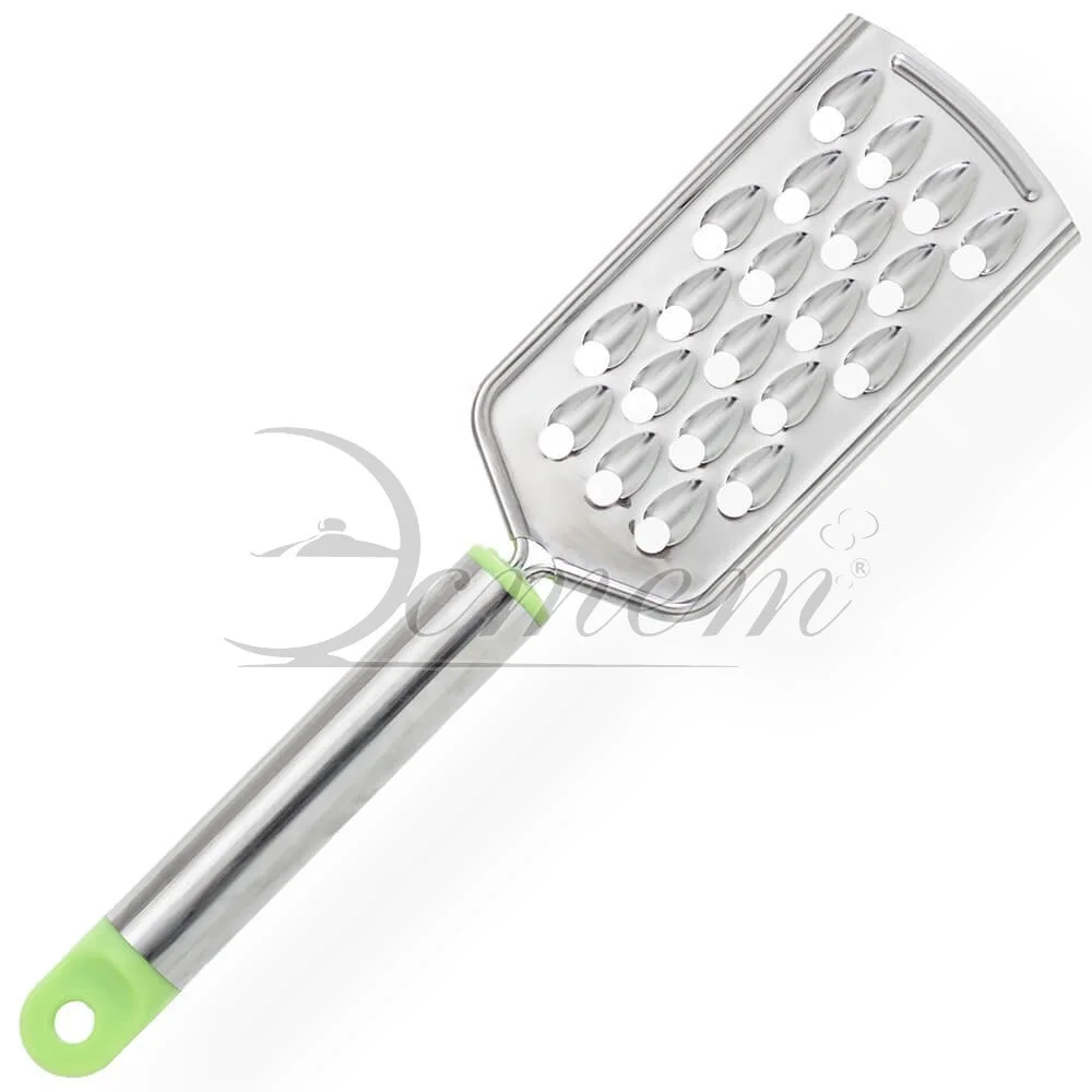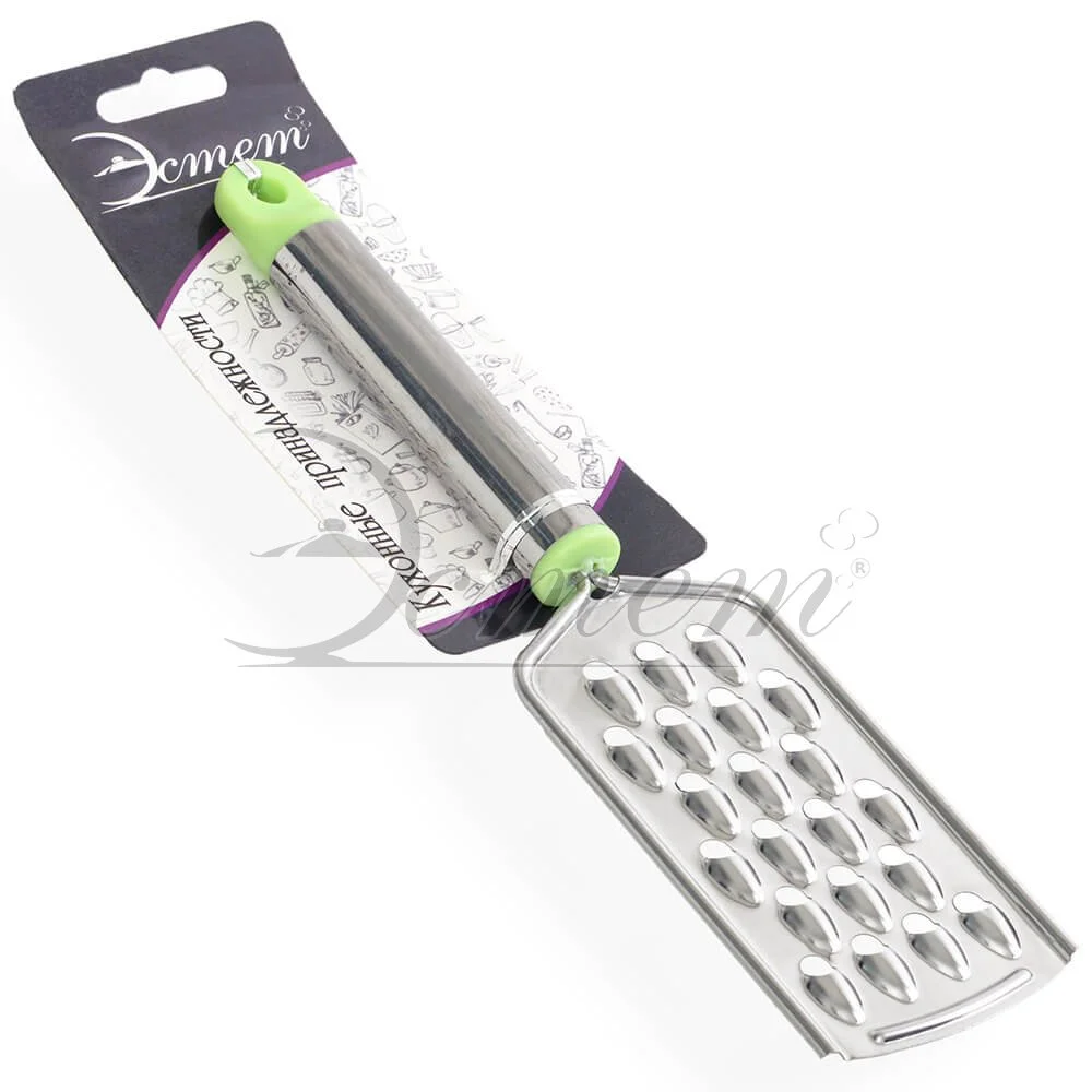 Тёрка рашпиль - терка необычной удлиненной формы. Теркой удобно измельчать продукт непосредственно над пищей перед самой подачей на стол или прямо в тарелку. Такой теркой одинаково удобно как двигать по продукту, так и продуктом по ней. Используется для измельчения шоколада, твёрдого или мягкого сыра. Тёрка изготовлена из высококачественной нержавеющей стали.