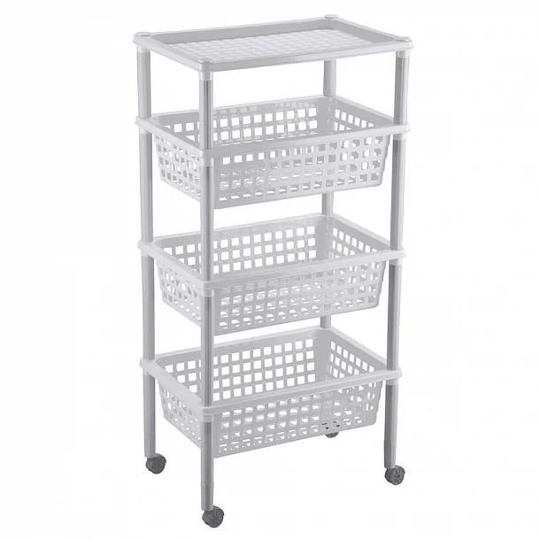 Этажерка «Элиза» имеет форму и размер, которые позволяют рационально использовать пространство кухни, ванной комнаты и других помещений. Идеально подходит для хранения овощей и фруктов, а также повседневных мелочей, средств гигиены и бытовой химии, газет и журналов. Имеются колесики, которые обеспечивают комфортное перемещение этажерки.