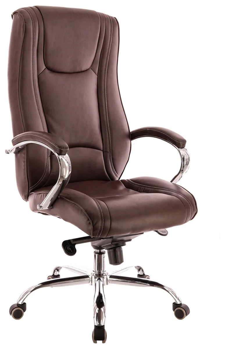 Современная модель рабочего кресла для руководителя, выполненная из устойчивой к длительной эксплуатации искусственной кожи коричневого цвета. Изделие станет отличным дополнением как классического интерьера, так и кабинета, оформленного в стиле хай-тек. Устойчивое металлическое основание, стальная крестовина и ролики с пластиковыми накладками позволяют беспрепятственно использовать данную модель на паркете.