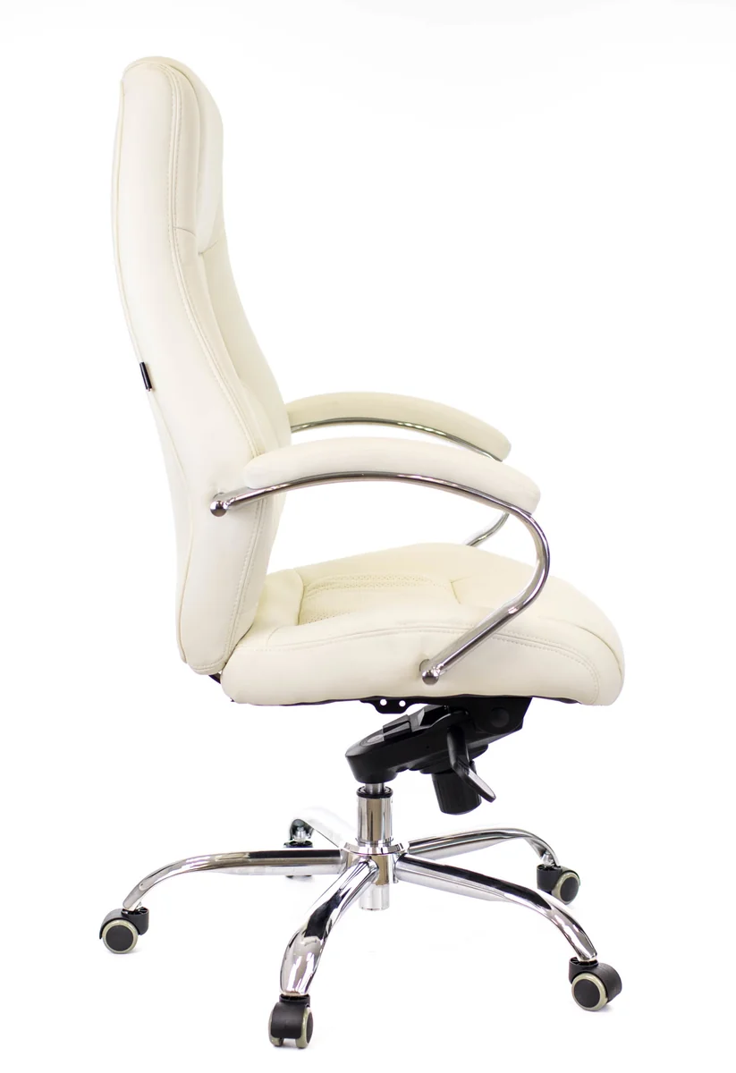 Стильный вариант для вашего кабинета, переговорной зоны. Удобное кресло с продуманной до мелочей конструкцией сидения и спинки, которая предполагает наличие поясничной поддержки. Встроенные механизмы: газ-патрон и мультиблок. Вы сможете настроить кресло непосредственно под свои предпочтения к комфорту. Экокожа в кремовом цвете не боится влаги, поэтому предполагает стандартный уход. Обивка – мягкая за счет наполнителя из полиуретана.