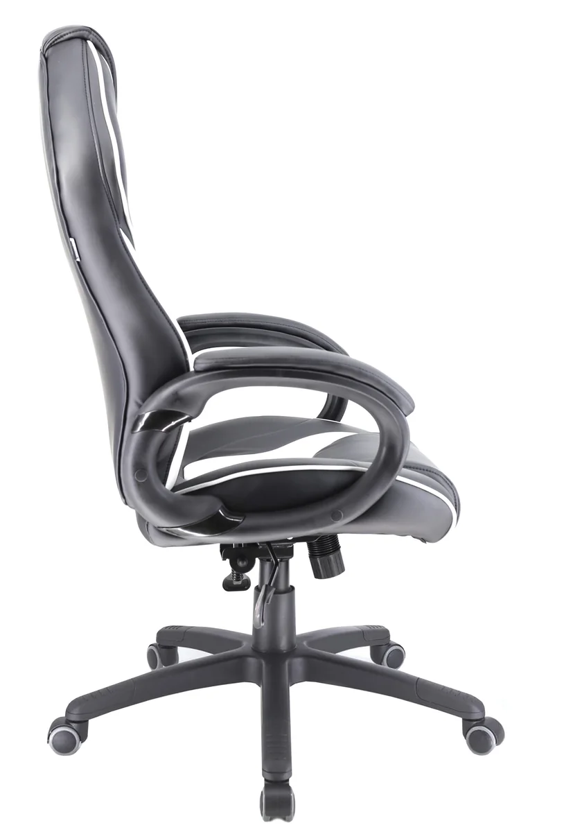Надежное геймерское кресло в черно-белом цвете в обивке из искусственной кожи. Механизмом качания в изделии выбрано устройство «ТопГан Мульти», благодаря которому доступно любое изменение угла наклона спинки с последующей фиксацией выбранного положения. Модель оснащена мягконабивными широкими спинкой и сиденьем, что обеспечивает комфорт во время длительной эксплуатации.