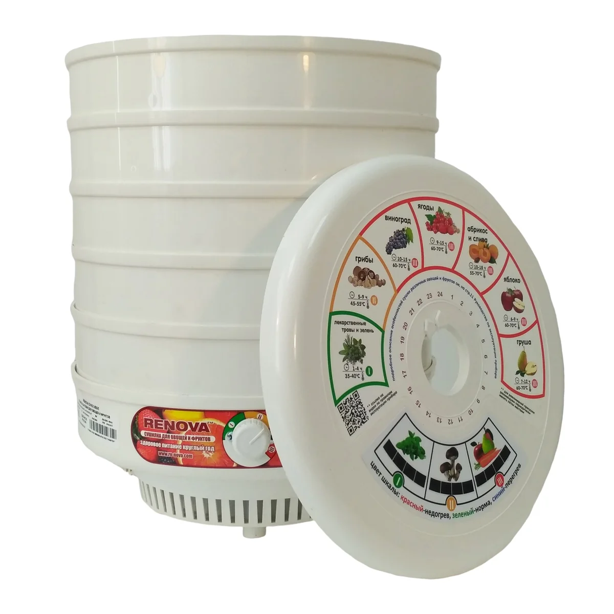 - Комплектация Сушилка для овощей и фруктов с поддонами, сумка-мешок для хранения, 1 поддон для пастилы, упаковка, руководство по эксплуатации