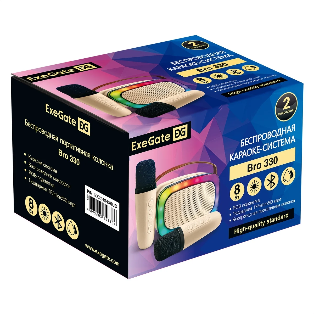 Компактная караоке-система с двумя беспроводными микрофонами и акустической системой, мощностью 8 Ватт для дома и небольших помещений. Подойдет как для детей, так и для взрослых. Мини колонка, два беспроводных микрофона, различные голосовые эффекты, регулируемая подсветка, выход для наушников, слот под TF/microSD карту памяти, встроенный аккумулятор, удобная ручка для транспортировки. Время работы до 6-ти часов. Микрофоны выполнены из пластика. Кнопки на микрофоне: включение/выключение, увеличение/уменьшение громкости.