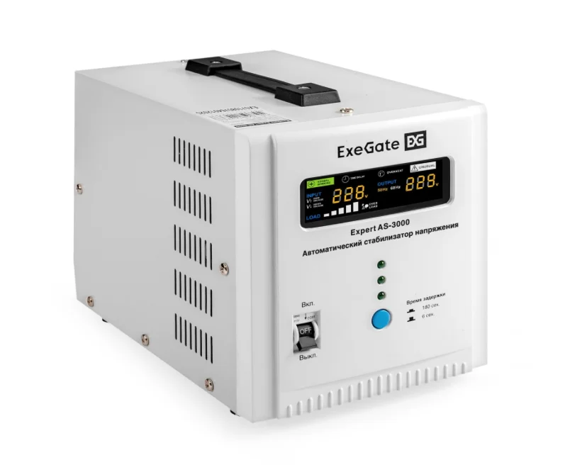 Стабилизатор напряжения ExeGate Expert AS-3000 (EX291724RUS)предназначен для защиты электроники от скачков напряжения и обеспечения стабильного питания для бытовых и офисных приборов.