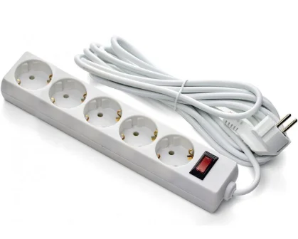 сетевой удлинитель, 5 розеток, 5 м, белый
