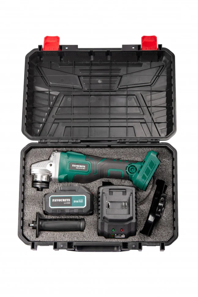 Аккумуляторная угловая шлифовальная машина в кейсе FAVOURITE OBS 21 FG 125 С предназначена для шлифования черных металлов (сталь, чугун), зачистки сварных швов, резки металла. Машина предназначена для небольших объемов работ. Инструмент не предназначен для использования по дереву, кирпичу, камню, бетону, асбесту и прочим материалам, образующим большое количество пыли.