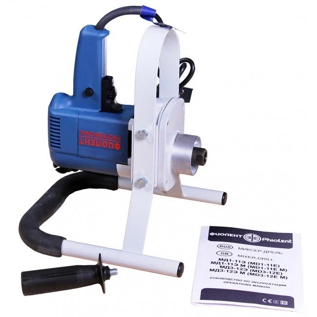 Миксер-дрель Фиолент МД1-11Э - это функциональный инструмент для строительных работ. Модель успешно применяется для перемешивания разнообразных строительных смесей - как вязкой краски или клея, так и сухого бетона. Резьбовое соединение обеспечивает простую и прочную фиксацию мешалки. Качественная изоляция привода и питающего шнура делают дрель-миксер безопасной в работе.