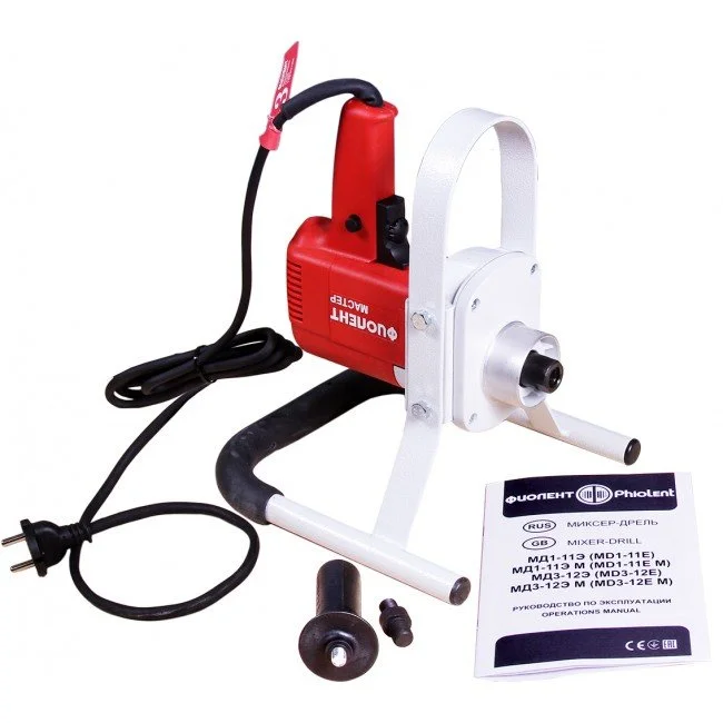 Миксер-дрель Фиолент МД1-11Э М - это функциональный инструмент для строительных работ. Модель успешно применяется для перемешивания разнообразных строительных смесей - как вязкой краски или клея, так и сухого бетона. Резьбовое соединение обеспечивает простую и прочную фиксацию мешалки. Качественная изоляция привода и питающего шнура делают дрель-миксер безопасной в работе.