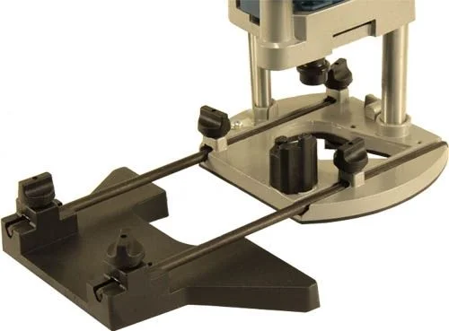 Направляющая (поставляется в комплекте) позволяет производить прямолинейное фрезерование пазов в диапазоне от 0 до 100 мм от края детали параллельно обрабатываемой детали;