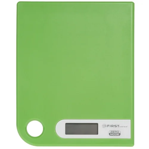 Кухонные весы First FA-6401-1-GN представлена в зеленом ярком корпусе, выполненном из пластика. Для удобной эксплуатации модель предусматривает конструкцию в виде платформы, на которую вы сможете класть продукты для взвешивания. На весах можно измерять вес не только овощей, фруктов, но и сыпучих продуктов типа сахара, круп, ведь модель обладает функцией "Тарокомпенсация". Она позволит вычесть из общего веса массу чаши, чтобы вы могли получить чистый вес продукта.
