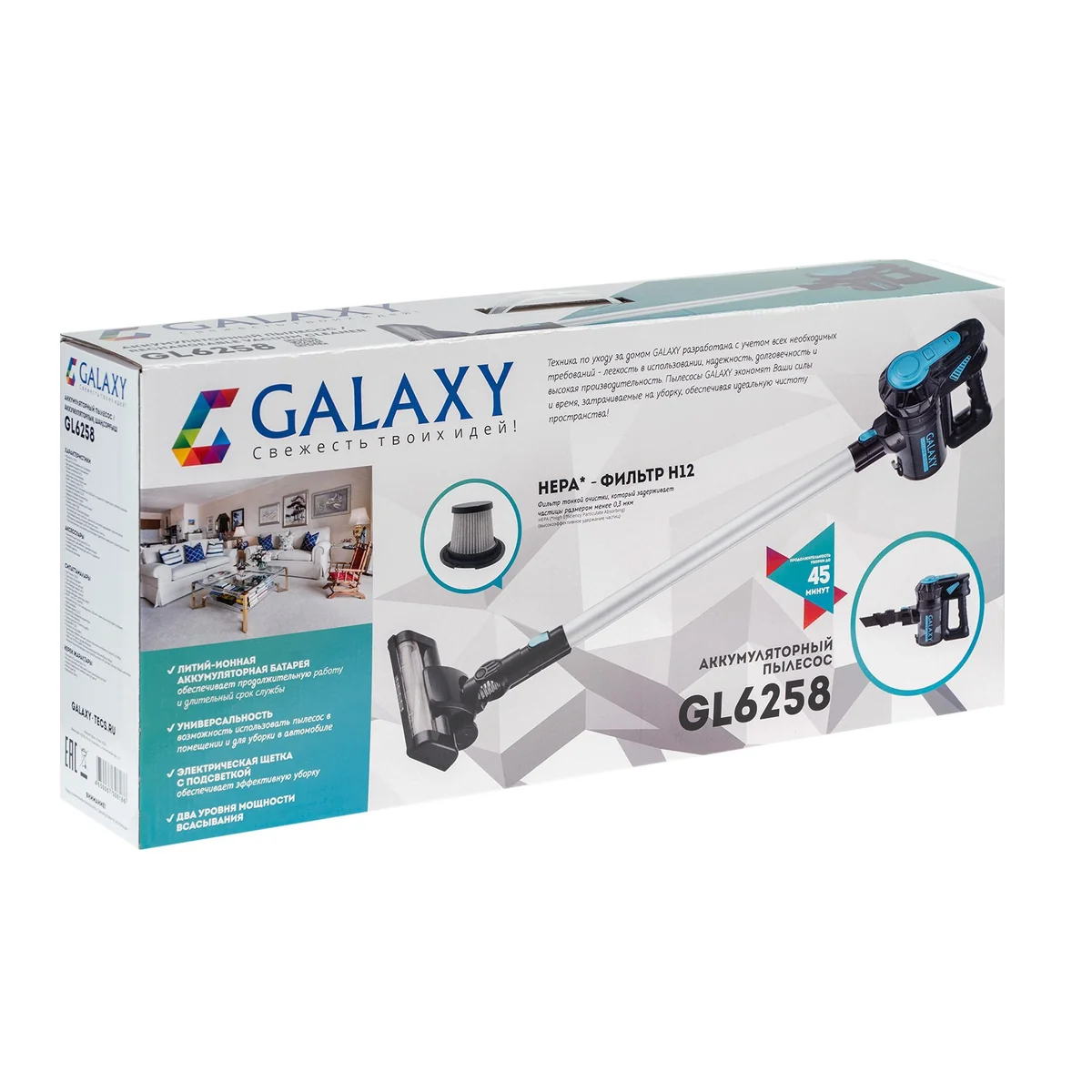 Беспроводной аккумуляторный пылесос GALAXY GL6258 создан для легкой и быстрой уборки.