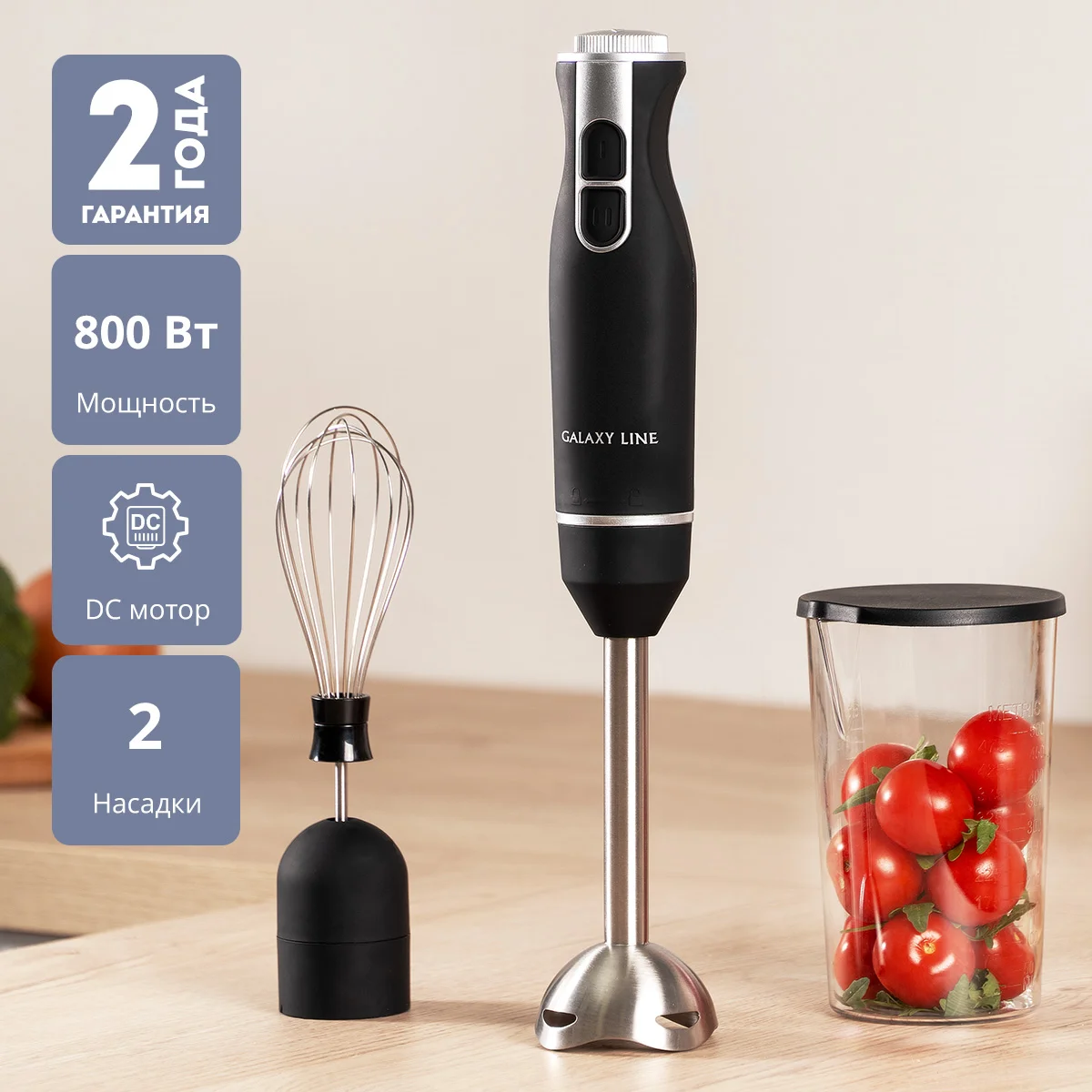 Погружной блендер GALAXY LINE – это универсальный прибор, который позволяет быстро приготовить однородное пюре из овощей и фруктов, смузи, крем-супы, домашние соусы и молочные коктейли.