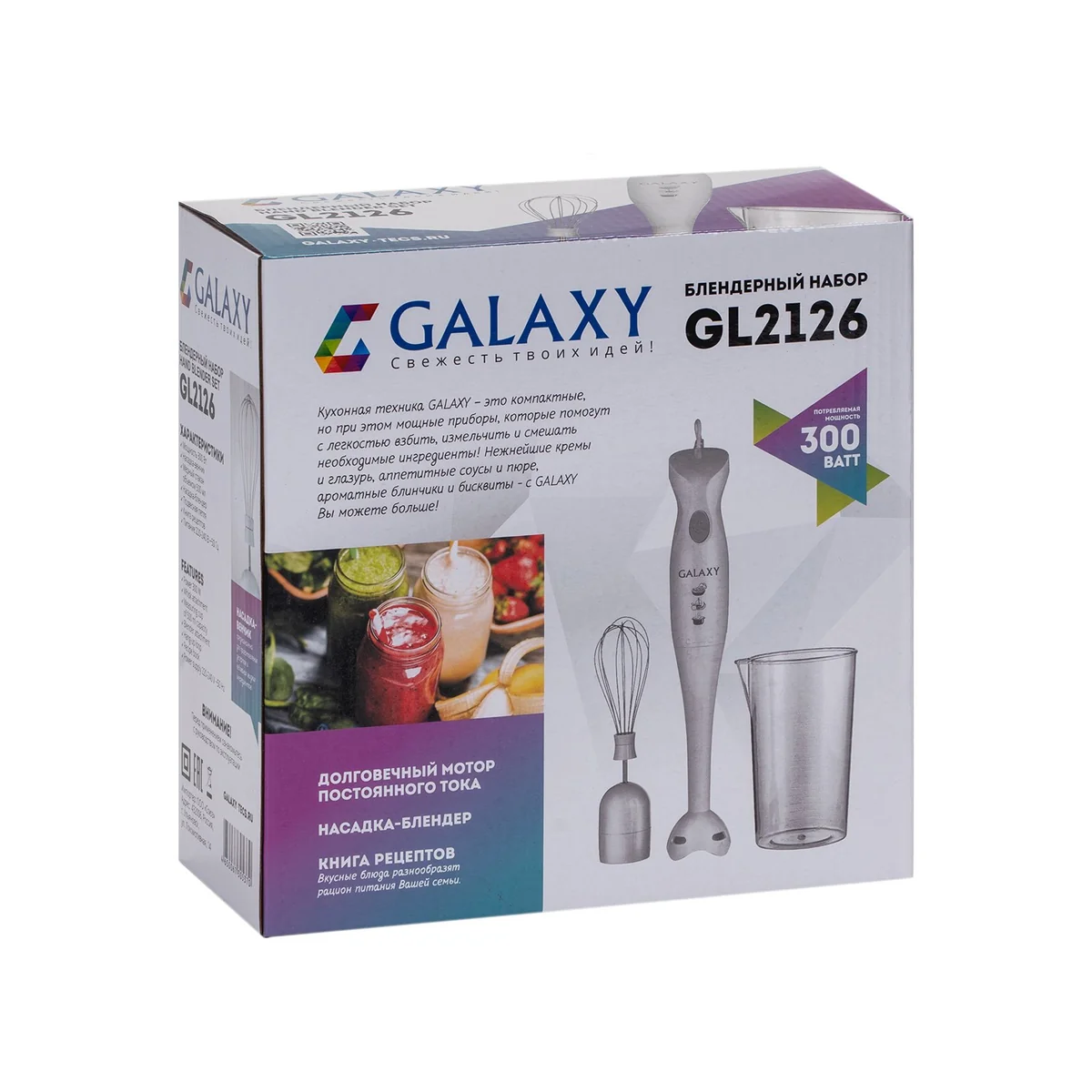 Блендерный набор GALAXY GL2126 имеет стильный эргономичный дизайн и оптимальную мощность 300 Вт,