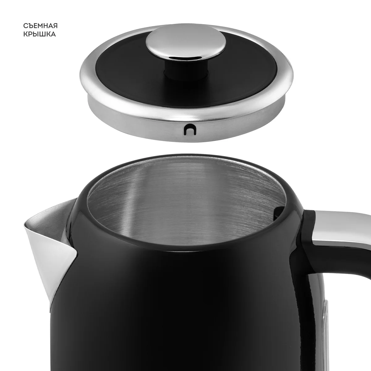 Съемная крышка облегчает наполнение и очистку чайника, делая его еще более удобным в использовании.