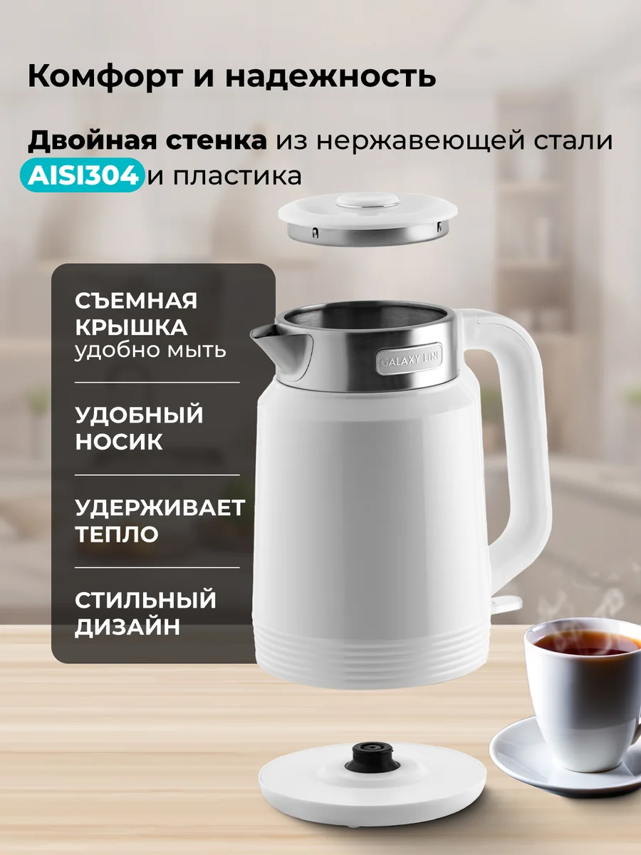 Электрический чайник с двойными стенками GALAXY LINE GL0364 прослужит вам долгие годы и украсит интерьер любой кухни.