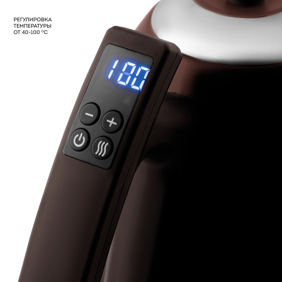 Удобная панель управления позволяет выбрать необходимый для заварки того или иного вида чая температурный режим от 40 до 100 °С. Вы сможете подогреть воду, не доводя ее до кипения. Эта функция позволяет готовить редкие сорта чая, которые нельзя заваривать кипятком, различные напитки и детские смеси.