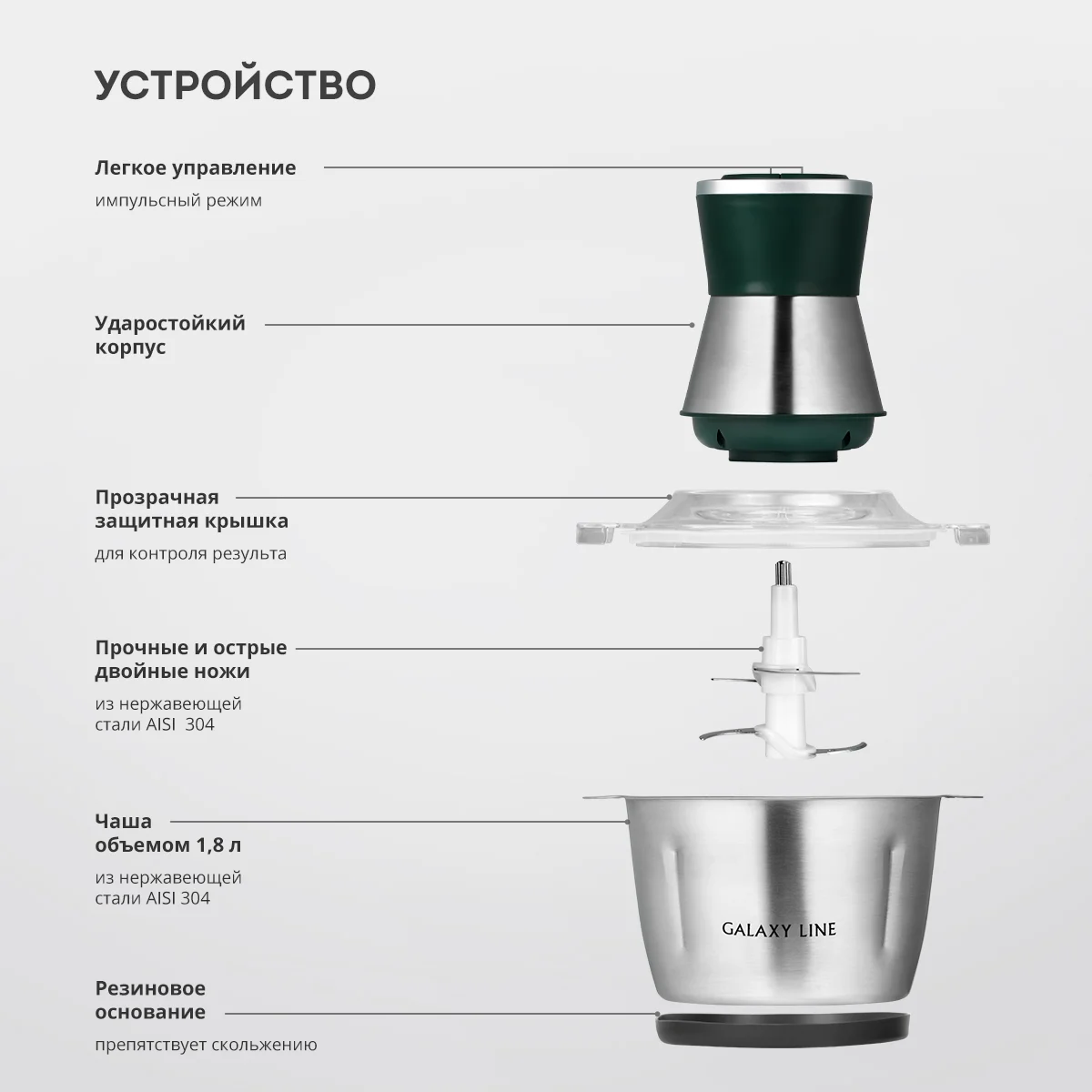 Измельчитель кухонный электрический GALAXY LINE GL2382 - многофункциональный прибор, сочетающий в себе функции нарезки и измельчения.