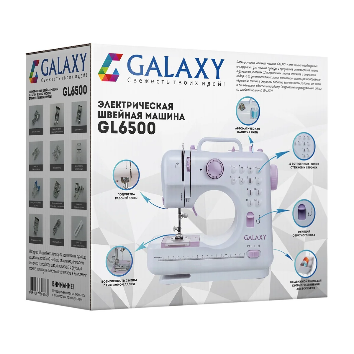 Электрическая швейная машина GALAXY GL6500 – это самый необходимый инструмент для пошива одежды и предметов интерьера из ткани.