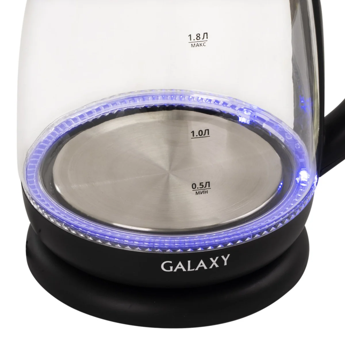 Чайник электрический GALAXY GL0554 имеет стильный дизайн, корпус из термостойкого стекла и светодиодную подсветку.