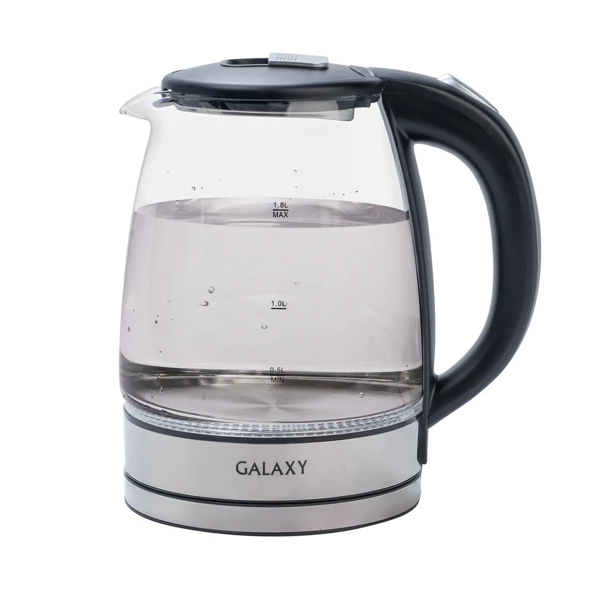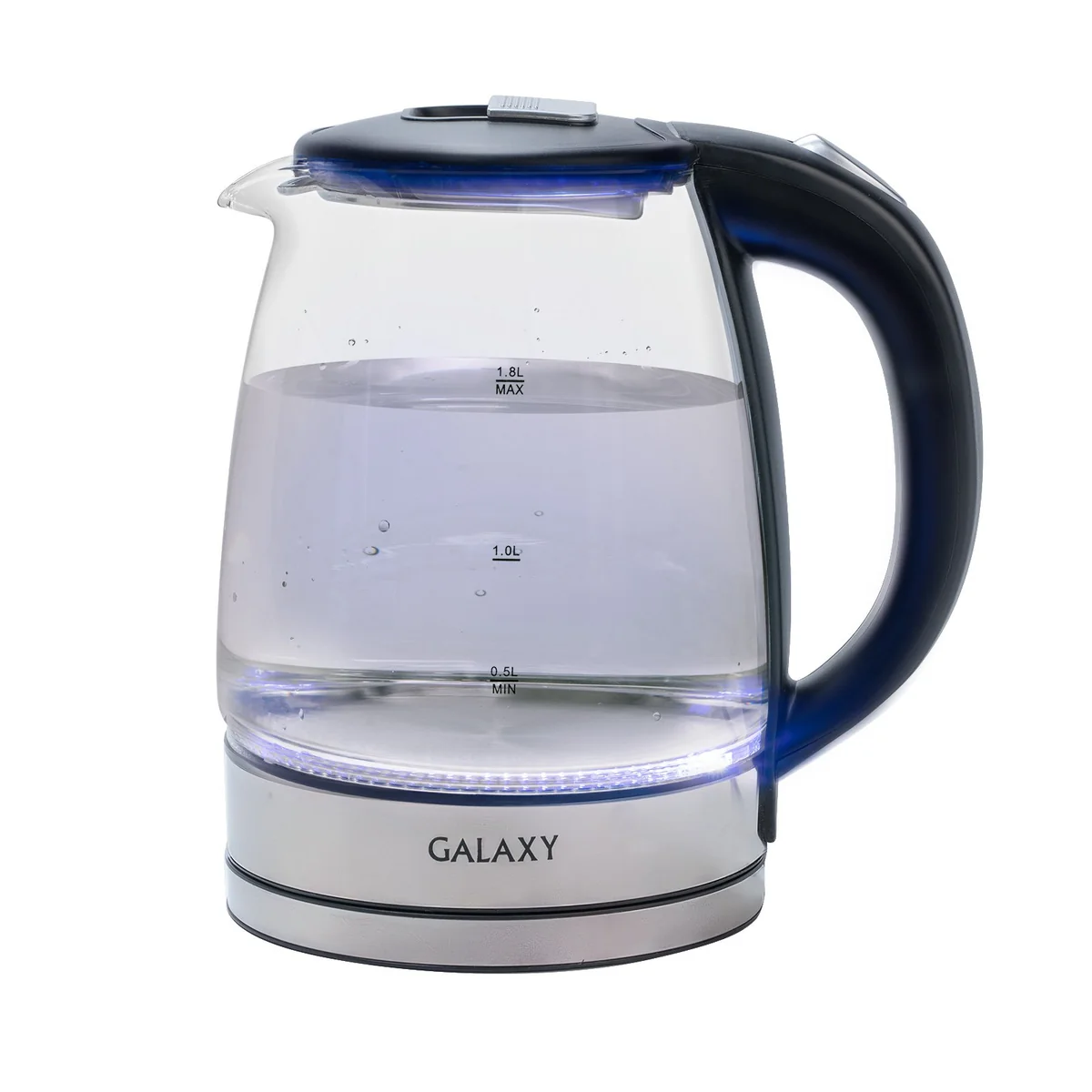 Чайник электрический GALAXY GL0555 имеет стильный дизайн, корпус из термостойкого стекла и светодиодную подсветку.