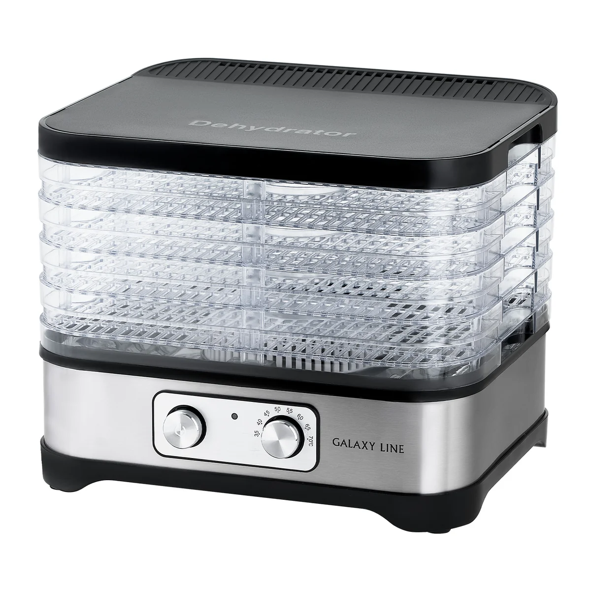 5 регулируемых по высоте съемных секций позволяют разместить в небольшом объеме максимум продуктов и добиться их наилучшего распределения для быстрого и равномерного высушивания.