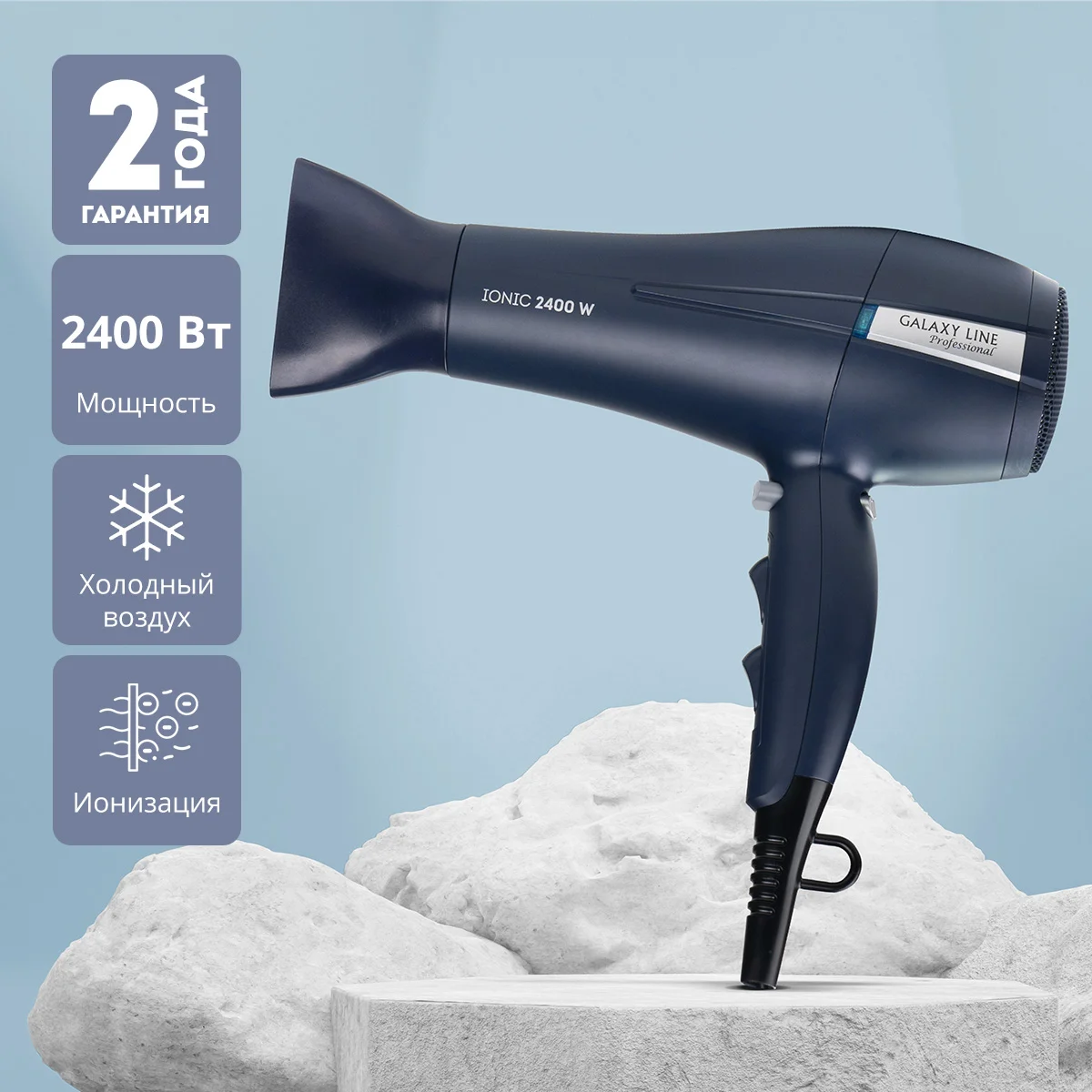 Современный и функциональный фен для волос GALAXY LINE поможет бережно высушить и уложить волосы.