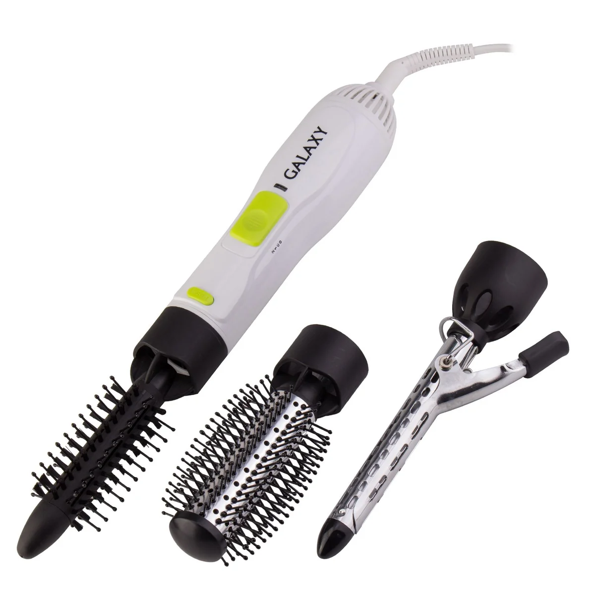 Две насадки различного диаметра помогут вам справиться со сложными укладками и стайлингом, а насадка-плойка позволит экспериментировать с кудрями.