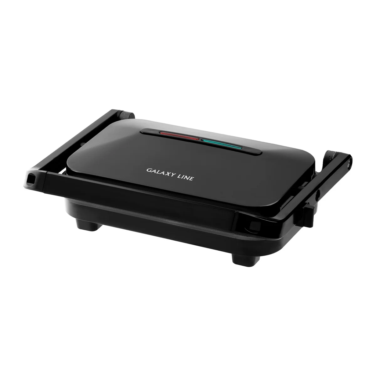 Компактный гриль GALAXY LINE предназначен для приготовления сочных стейков и колбасок, а также для обжаривания овощей, грибов, рыбы и приготовления горячих бутербродов.