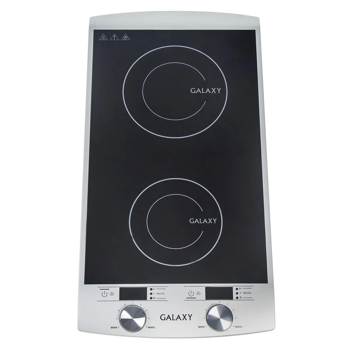 Индукционная двухконфорочная плита GALAXY GL3057 нагревает посуду (кастрюлю, сковороду), а не поверхность плиты.