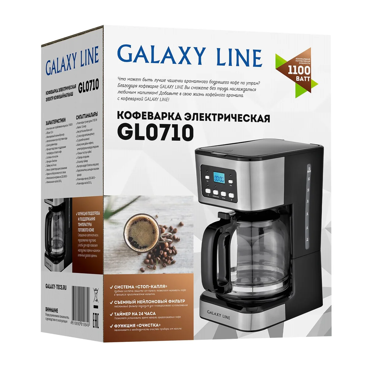 Съемный нейлоновый фильтр подходит для многоразового использования. Кофеварка GALAXY LINE GL0710 оснащена удобным дисплеем для выбора различных программ.