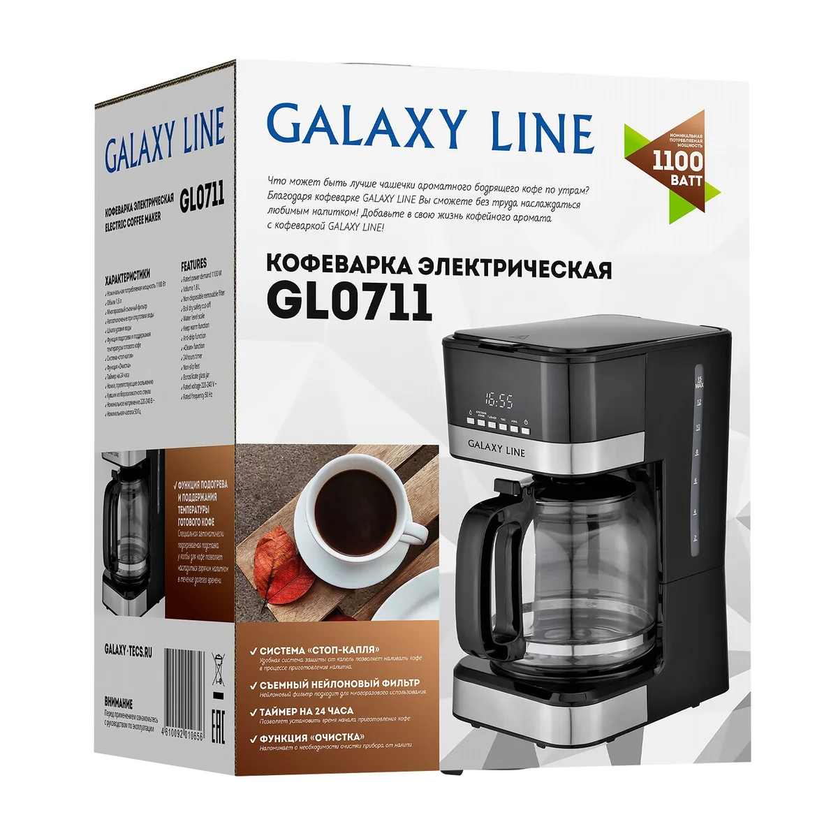 Кофеварка капельного типа GALAXY LINE GL0711 - это эффективный, стильный и современный прибор для приготовления напитка из молотых зерен кофе.