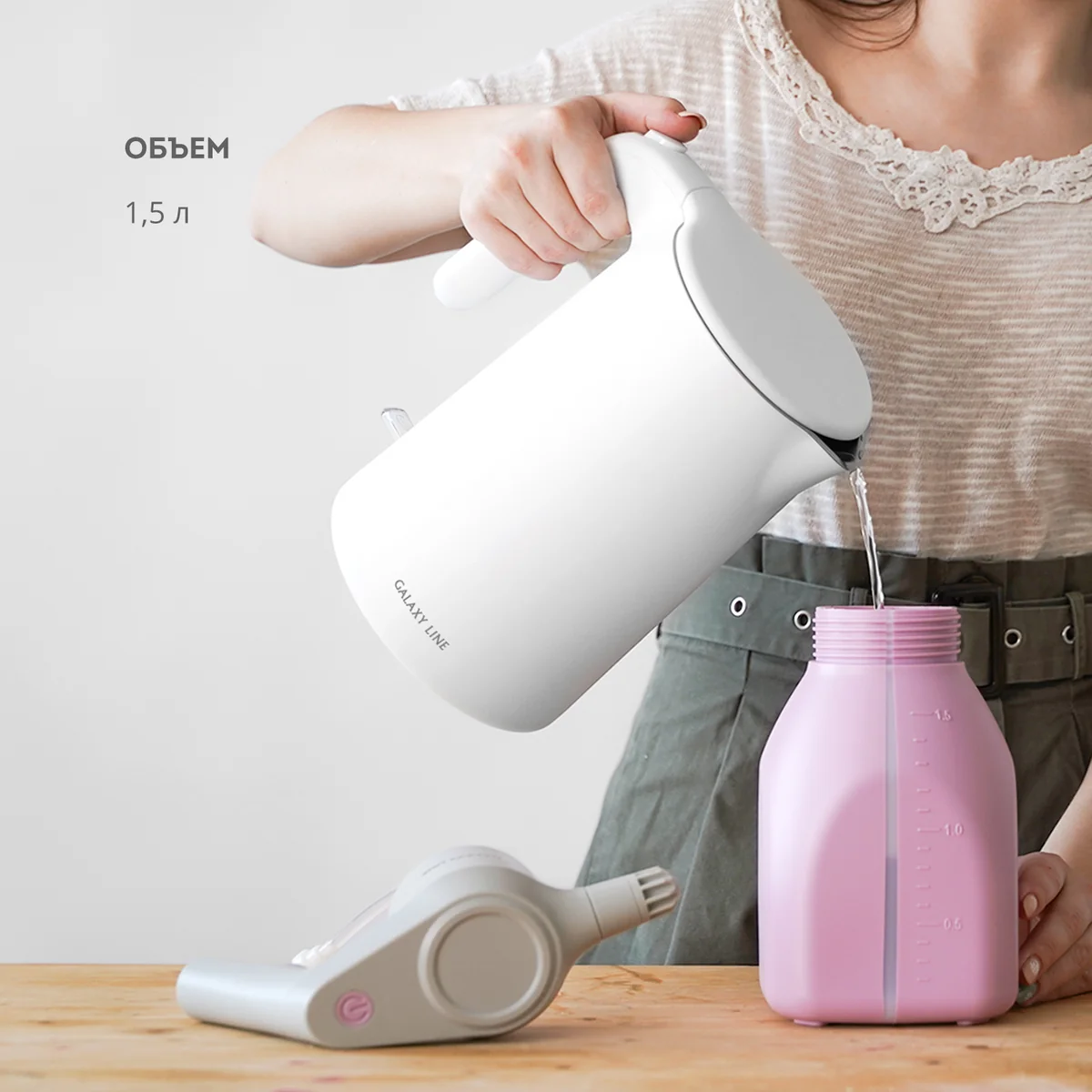- Объем емкости для жидкости: 1,5 л