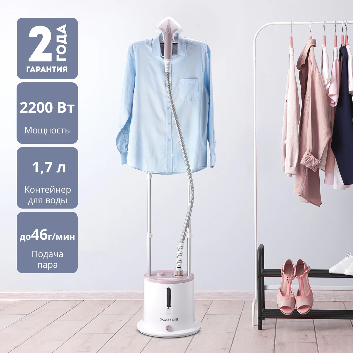 Отпариватель GALAXY LINE имеет контейнер для воды объемом 1,7 литра.