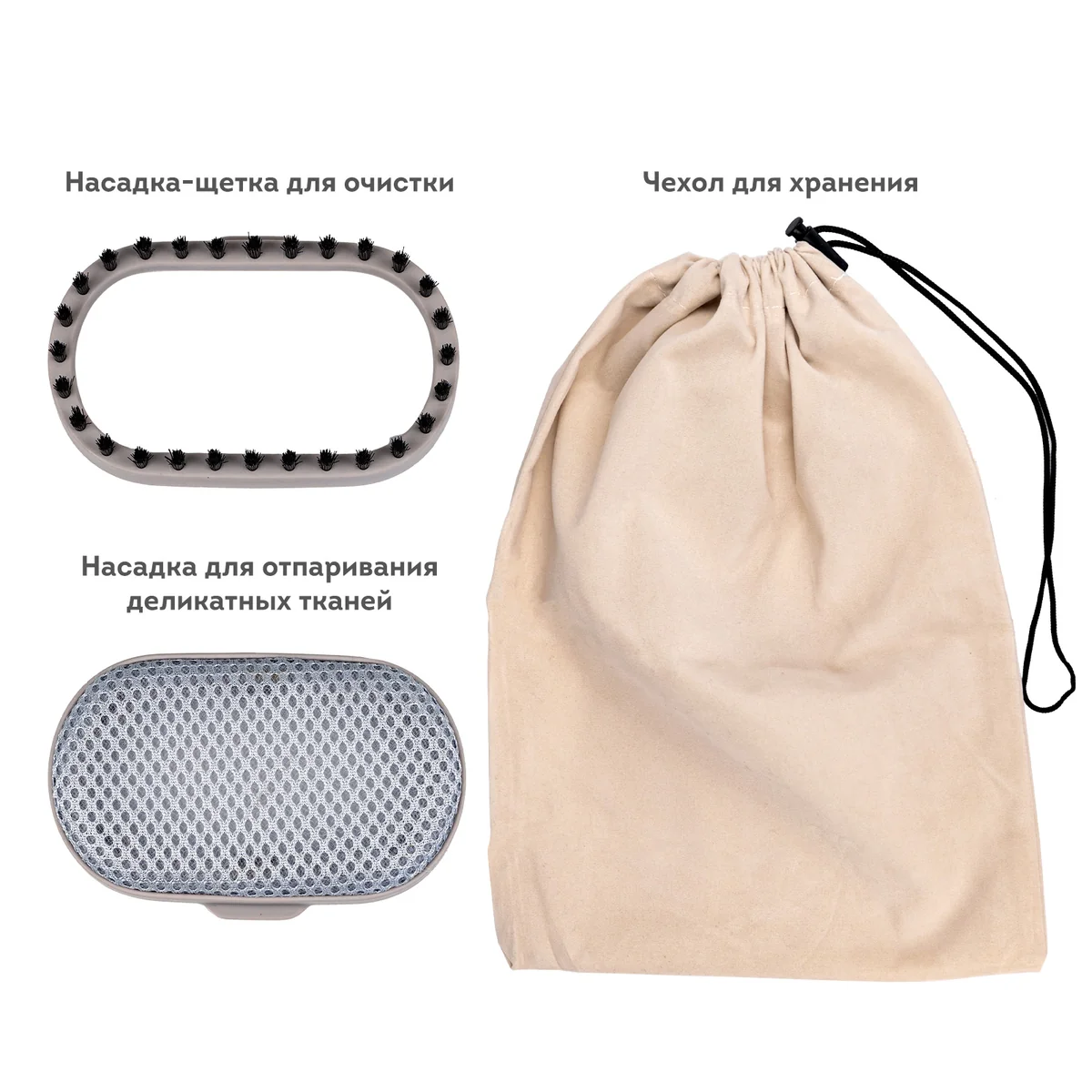 - Насадка-щетка для очистки и насадка для отпаривания деликатных тканей в комплекте