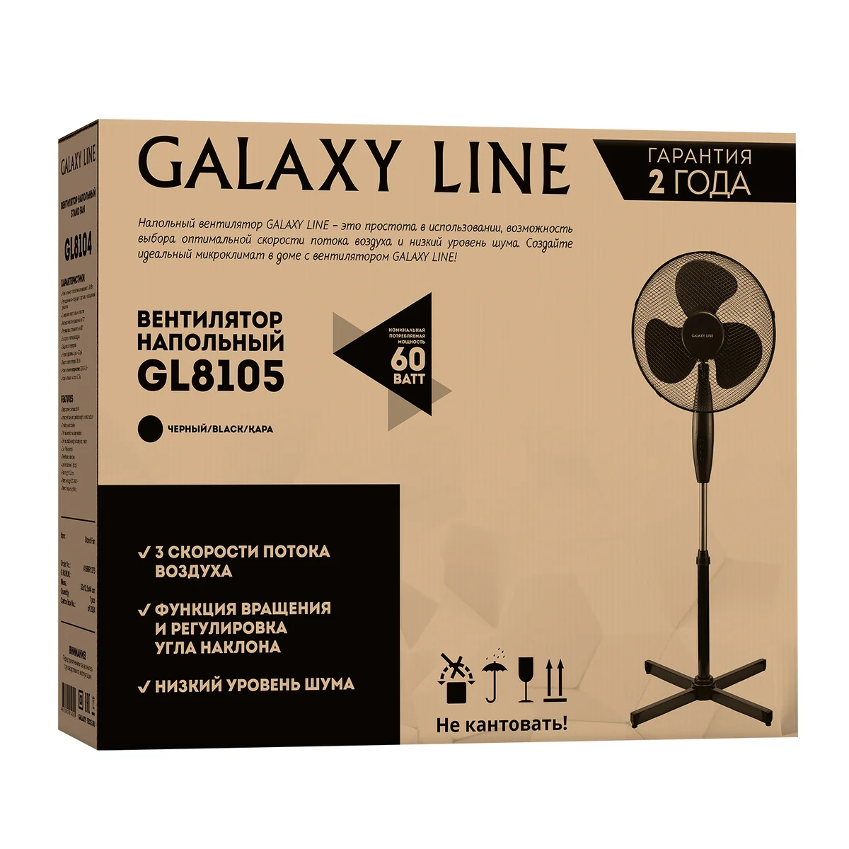 Вентилятор напольный GALAXY LINE GL8105 предназначен для охлаждения помещения в жаркое время года. 3 широкие пластиковые лопасти создают мощные потоки воздуха, проникающие в дальние углы комнаты. Прибор оснащен 3 скоростными режимами (низкий, средний и высокий уровень обдува) для создания оптимального климата помещения. Дополнительным преимуществом вентилятора GALAXY LINE является наличие автоматического вращения на 70° и регулировки угла наклона в 30°, благодаря чему прохладный воздух равномерно распространяется по всей комнате и создает эффект естественного бриза. Мощность прибора составляет 60 Вт, что обеспечивает одновременно высокую производительность и экономичное потребление электроэнергии. Низкий уровень шума 50 дБ и защита прибора от перегрева обеспечивают безопасную и комфортную эксплуатацию. Данная модель имеет улучшенную конструкцию подставки и защитной решетки, оптимальный диаметр 40 см, высоту 120 см, шнур питания 150 см. Гарантия на GALAXY LINE GL8105 составляет 2 года. Создавайте идеальный микроклимат в доме с техникой GALAXY LINE.