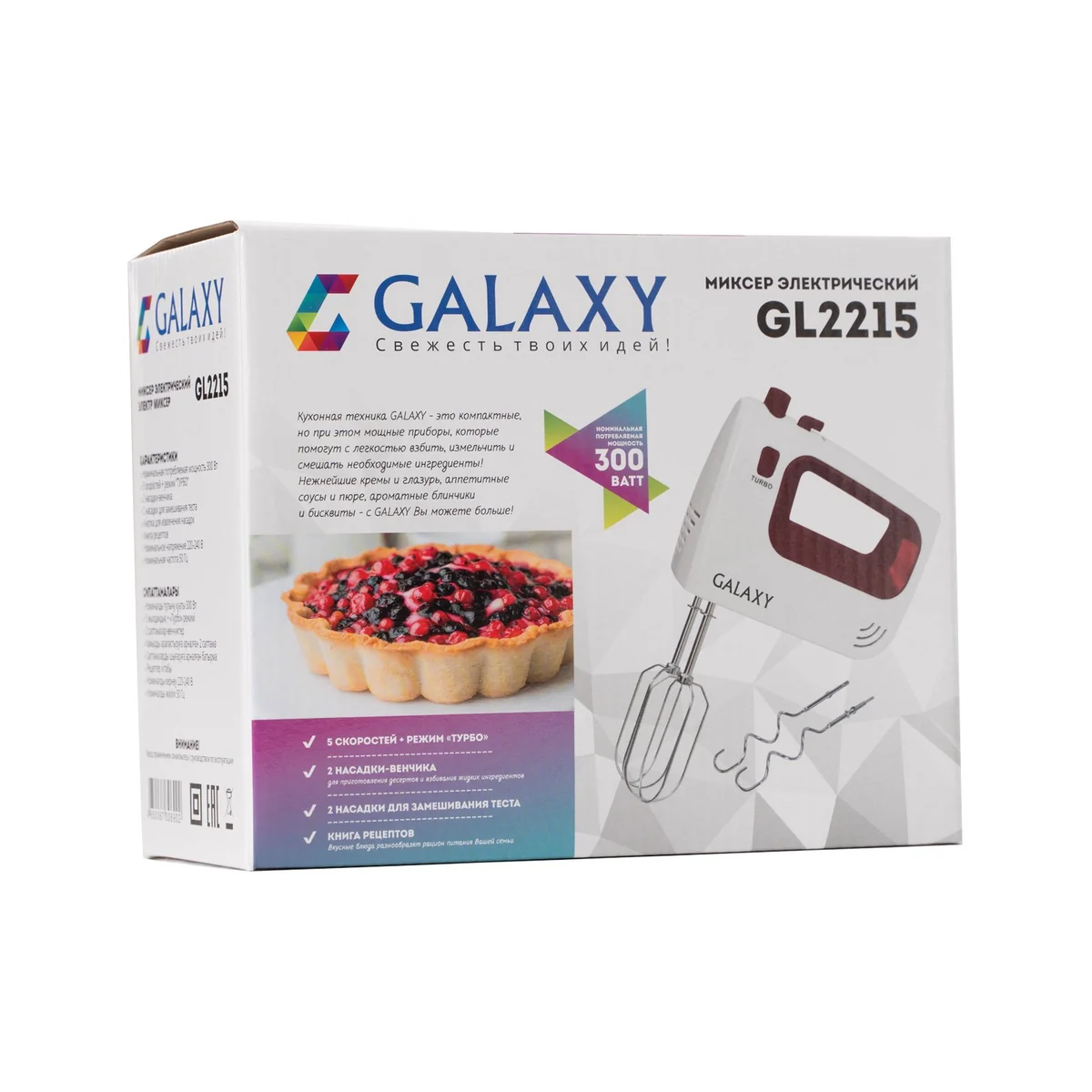 GALAXY GL2215 имеет 5 скоростей и режим “Турбо”, который позволяет взбивать на максимальных оборотах,