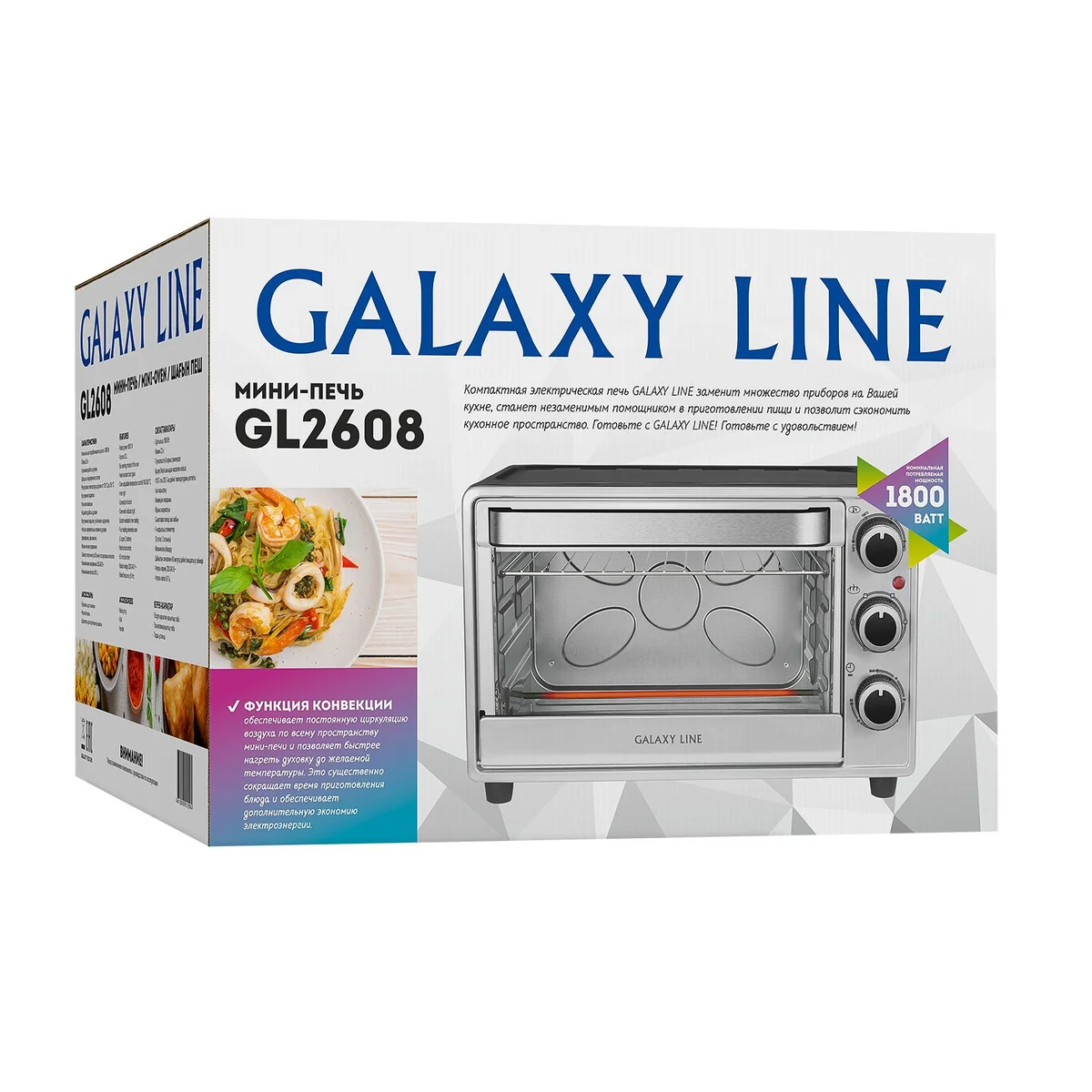 Многофункциональная мини-печь GALAXY LINE GL2608 заменит множество приборов на Вашей кухне.