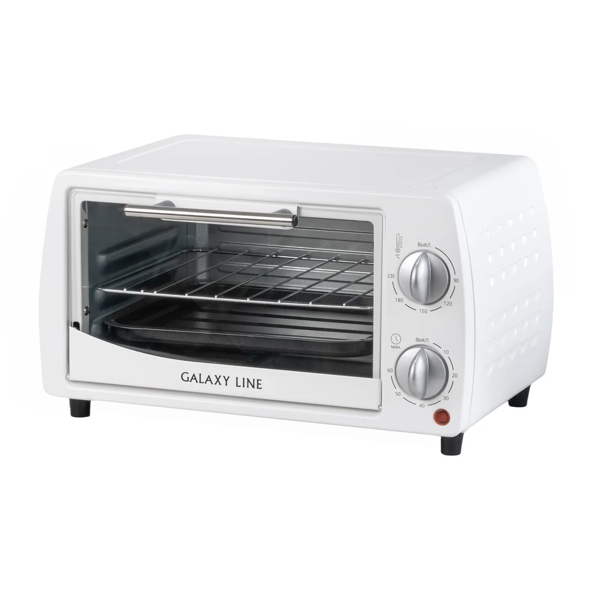 Удобная и простая механическая система с вращающимися ручками делает мини-печь GALAXY LINE простой в управлении.