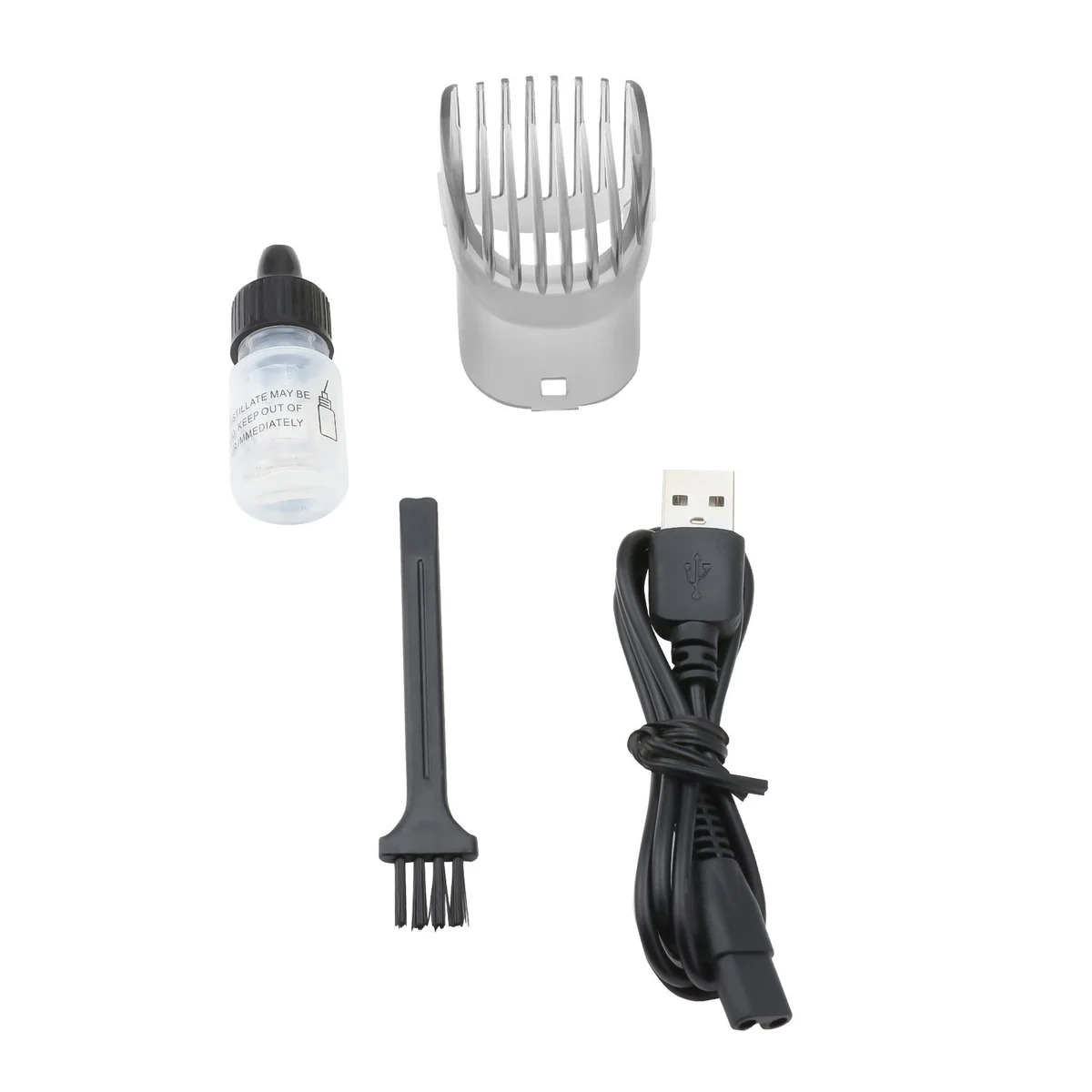 - Насадка-расческа, щетка для чистки, масло для смазки в комплекте