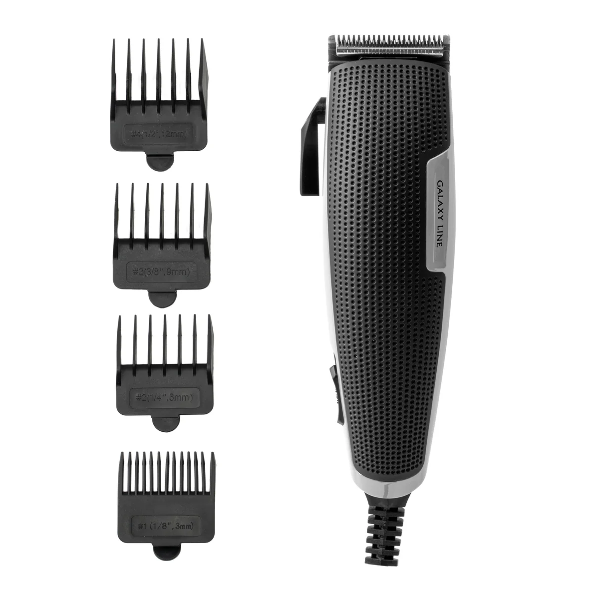 Набор для стрижки GALAXY LINE GL4108 представляет собой универсальную машинку для стрижки с разными насадками. Вы сможете сделать как простую, так и индивидуальную модельную стрижку в домашних условиях. Минимальная длина стрижки без использования насадок – расчесок составляет 1 мм, максимальная длина с использованием рычага регулировки длины лезвия – 2 мм. Благодаря 4 насадкам-расческам, поставляемым в комплекте, можно создать стрижку длиной 3, 6, 9, 12 мм.