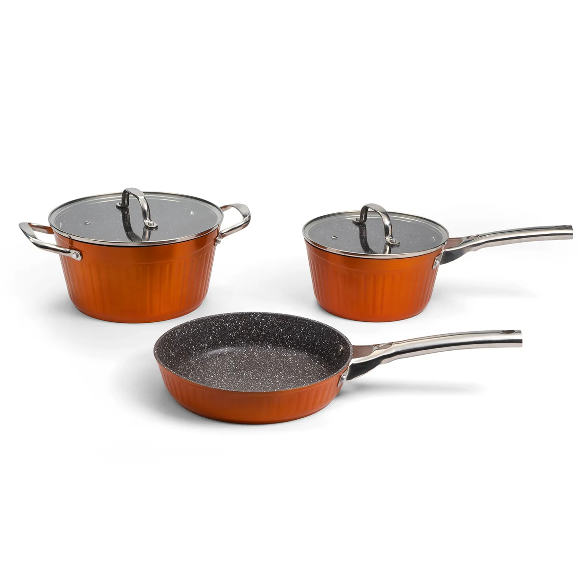 Набор посуды GALAXY GL9515 включает 5 предметов: кастрюля объемом 4,6 л. с крышкой, ковш объемом 2,7 л с крышкой, сковорода диаметром 24 см. Бесспорным преимуществом данного набора являются толстые стенки и дно. Вся посуда выполнена из литого высококачественного алюминия толщиной 3,5 мм, что обеспечивает долгий срок службы. Постепенный и равномерный нагрев позволяет готовить вкусные ароматные блюда, сохраняя максимальное количество витаминов и полезных микроэлементов. Набор посуды GALAXY имеет антипригарное мраморное покрытие, которое исключает подгорание и прилипание пищи, позволяя готовить с минимальным количеством масла. Дополнительным преимуществом набора посуды GALAXY GL9515 является универсальная крышка, которая подходит как для кастрюли, так и для сковороды. Крышки в наборе выполнены из термостойкого стекла с отверстием для выхода пара. Такая конструкция исключает образование конденсата и позволяет контролировать процесс приготовления. Все ручки в наборе посуды GL9515 имеют стильную форму и выполнены из долговечной нержавеющей стали. Ручки прикручены, а не приварены, что обеспечивает долгий срок службы и отсутствие нагрева. Термоаккумулирующее дно подходит для всех типов плит, в т.ч. индукционных. Яркий, стильный и практичный набор посуды GALAXY GL9515 идеально впишется в интерьер Вашей кухни.