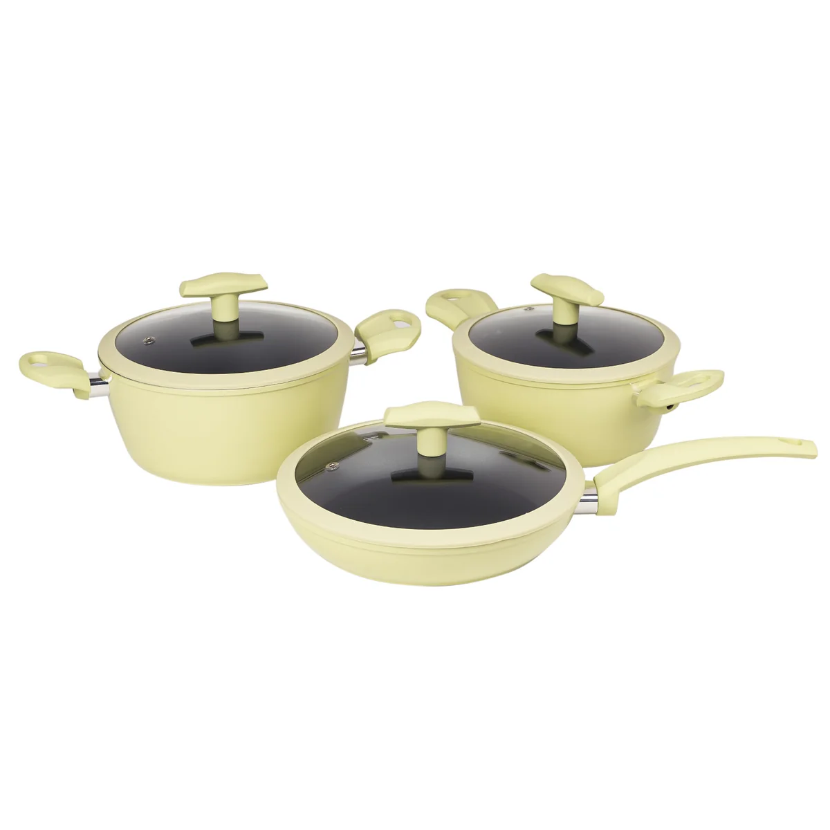 Набор посуды GALAXY LINE GL9521 включает 6 предметов: кастрюля объемом 3 литра с крышкой, кастрюля объемом 2,3 литра с крышкой, сковорода диаметром 24 см. с крышкой. Бесспорным преимуществом данного набора являются толстые стенки и дно. Вся посуда выполнена из литого алюминия толщиной 3,5 мм. Постепенный и равномерный нагрев позволяет готовить вкусные ароматные блюда, сохраняя максимальное количество витаминов и полезных микроэлементов. Высококачественное антипригарное покрытие обеспечивает качественное постепенное приготовление продуктов, исключает пригорание и прилипание.