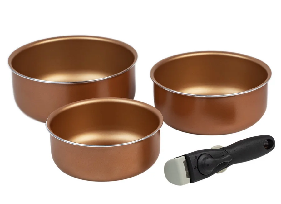 Съемная ручка удобна для компактного хранения посуды.