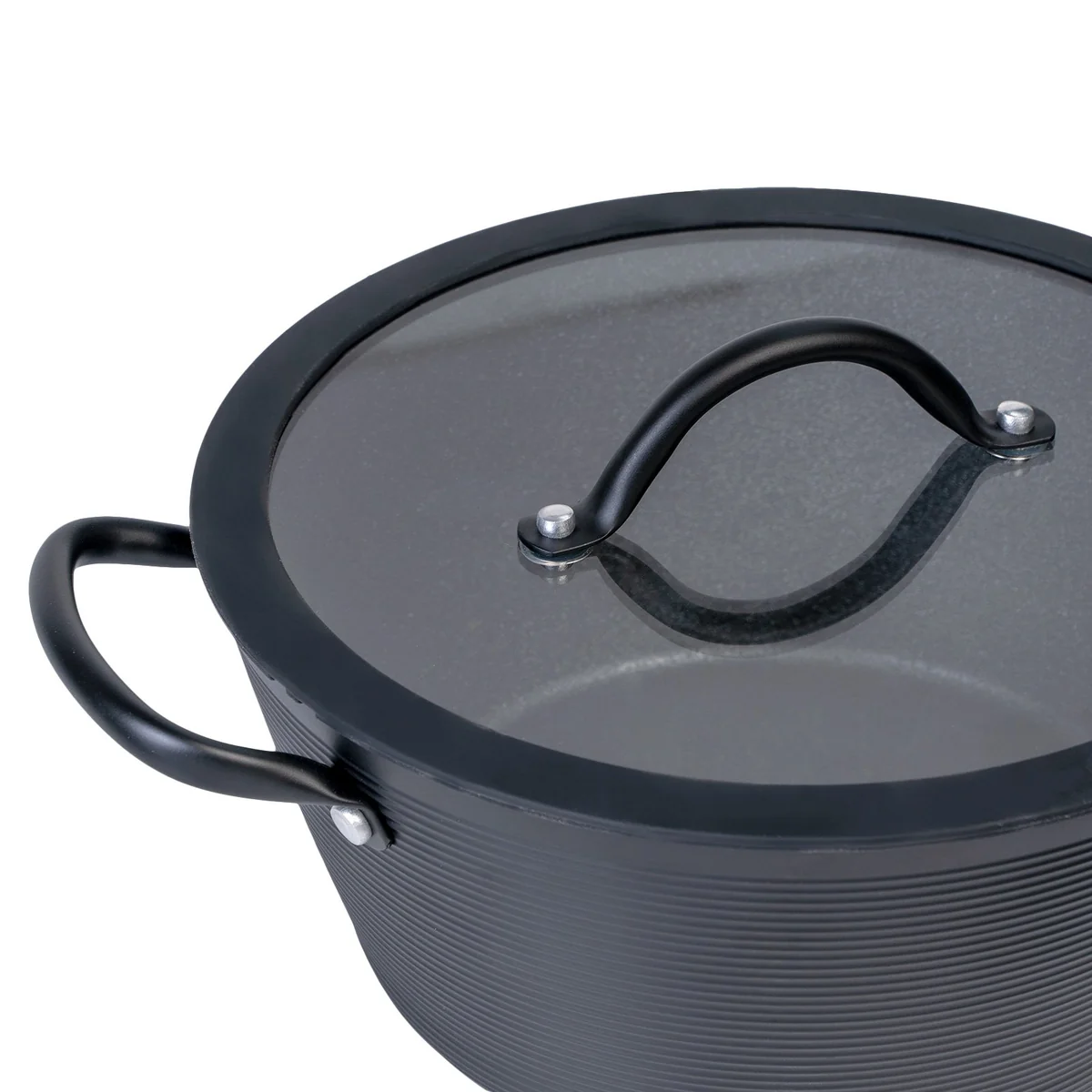 Крышки из термостойкого стекла плотно прилегают к посуде, а лишний пар выходит через специальные отверстия.