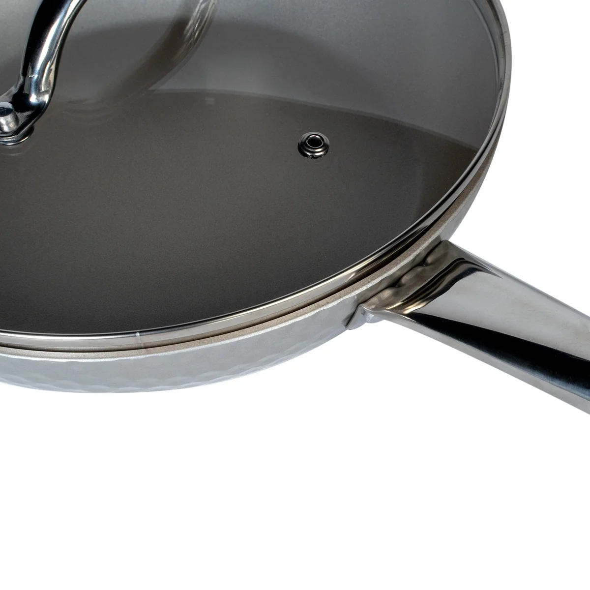 Крышки в наборе GALAXY LINE выполнены из термостойкого стекла с отверстием для выхода пара, а ручки из нержавеющей стали.